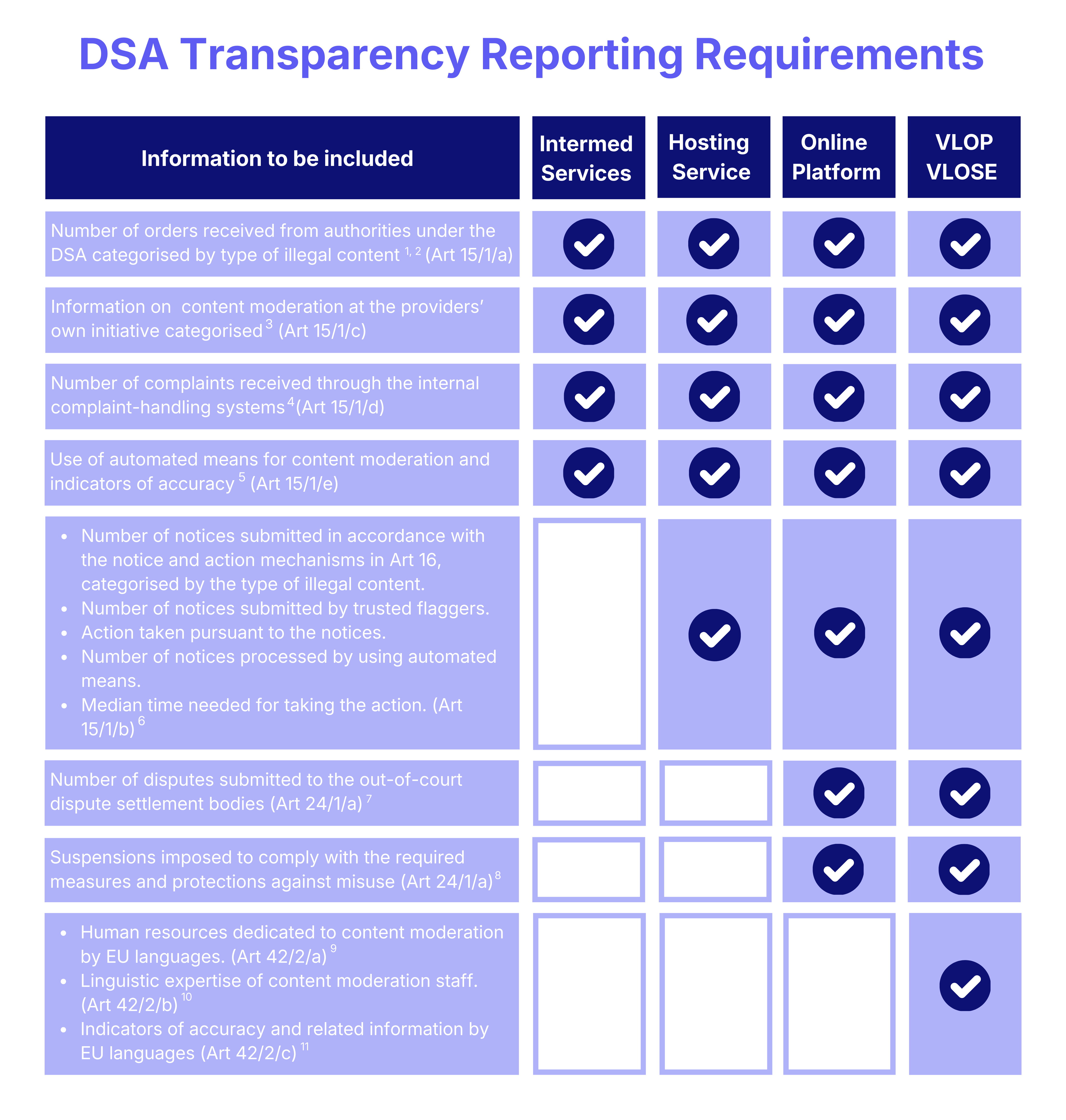 DSA Checklist: Information to be included in the Transparency Report under the Digital Services Act